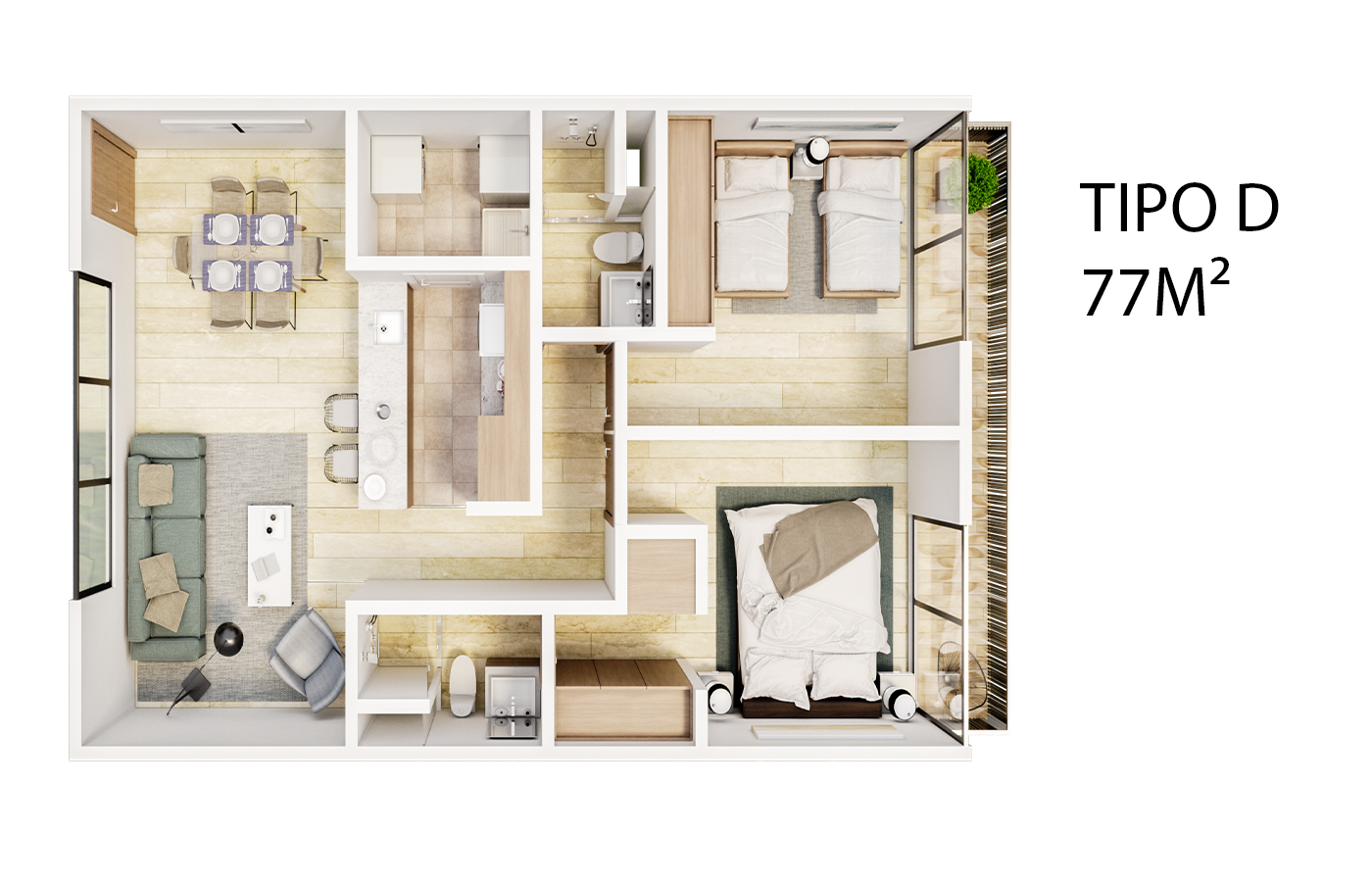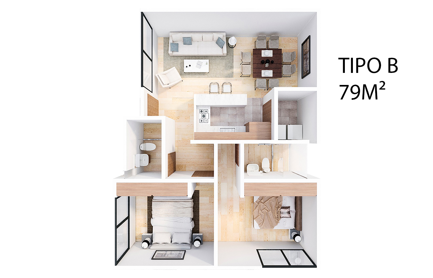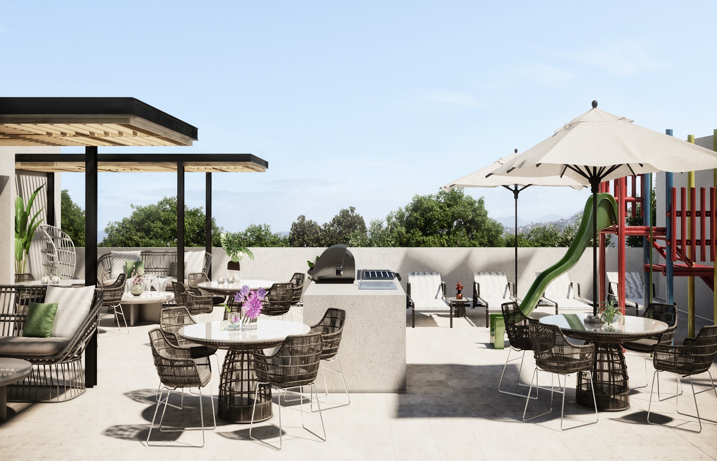 - • Estancia, comedor, cocina integral, patio de servicio, 2 recámaras, 2 baños, 2 cajones de estacionamiento, elevador, roof garden comun, gym, ludoteca, salon de adultos y vigilancia 24hrs.