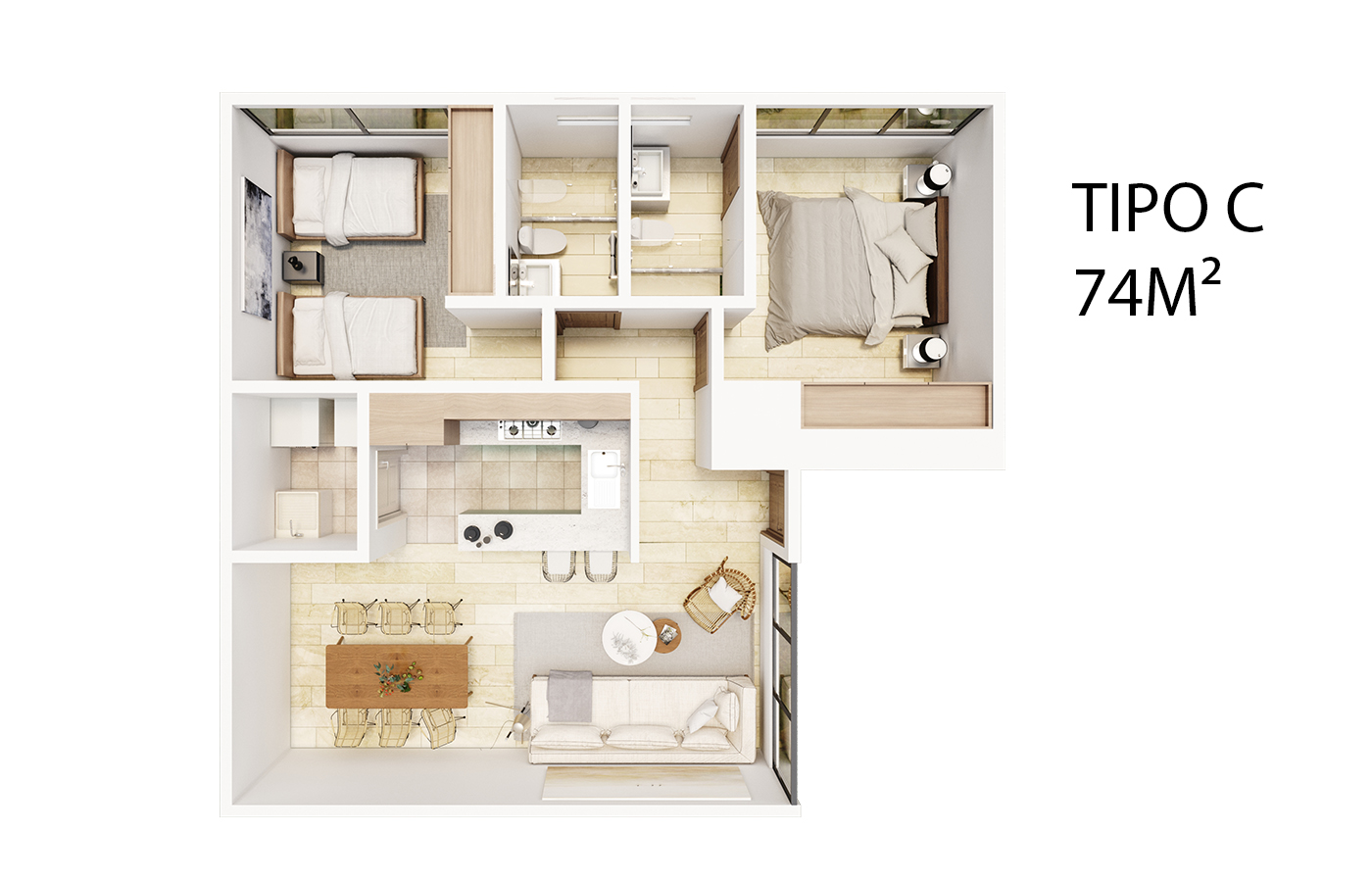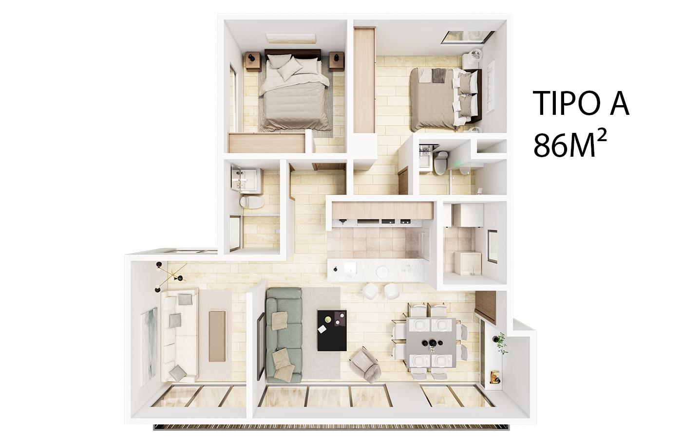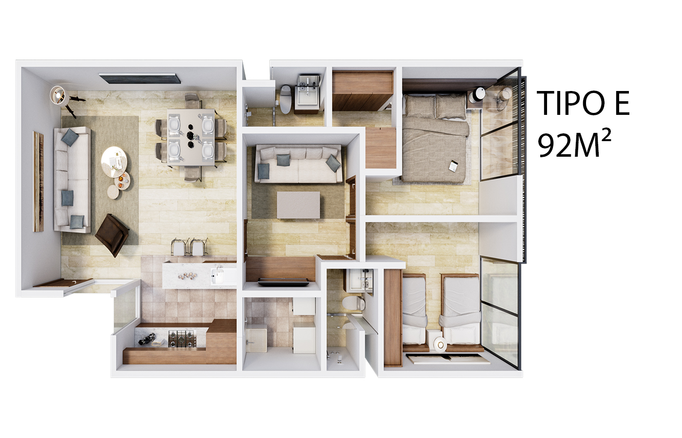 - • Estancia, comedor, cocina integral, patio de servicio, 2 recámaras, 2 baños, 2 cajones de estacionamiento, elevador, roof garden comun, gym, ludoteca, salon de adultos y vigilancia 24hrs.